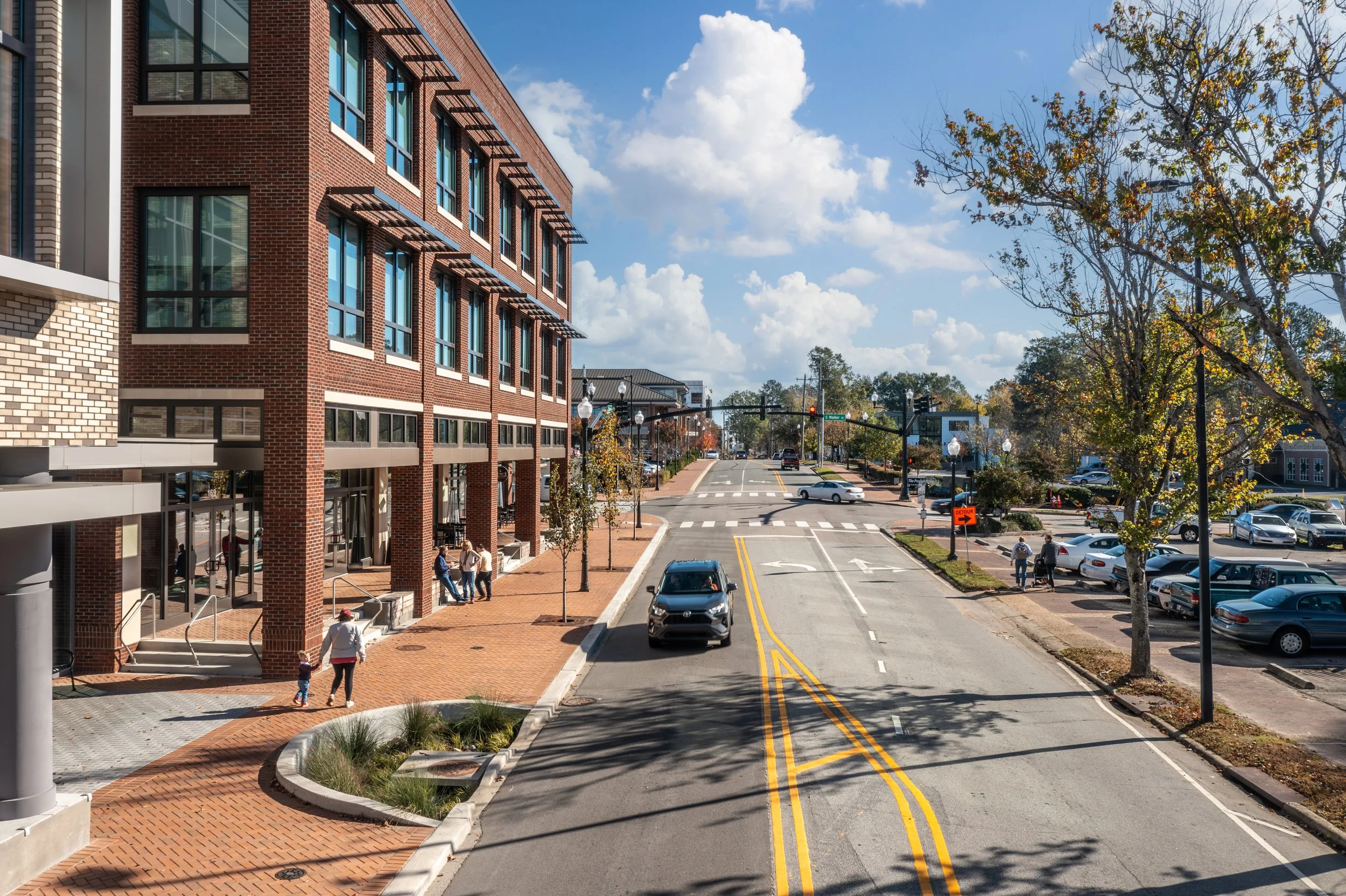 The Rogers is a prominent mixed-use development located in downtown Cary, offering 10,000 RSF of street-level retail and 40,000 RSF of class-A office space. The design features two distinct sections—Rogers West and Rogers East—connected by a striking three-story, atrium-style lobby.