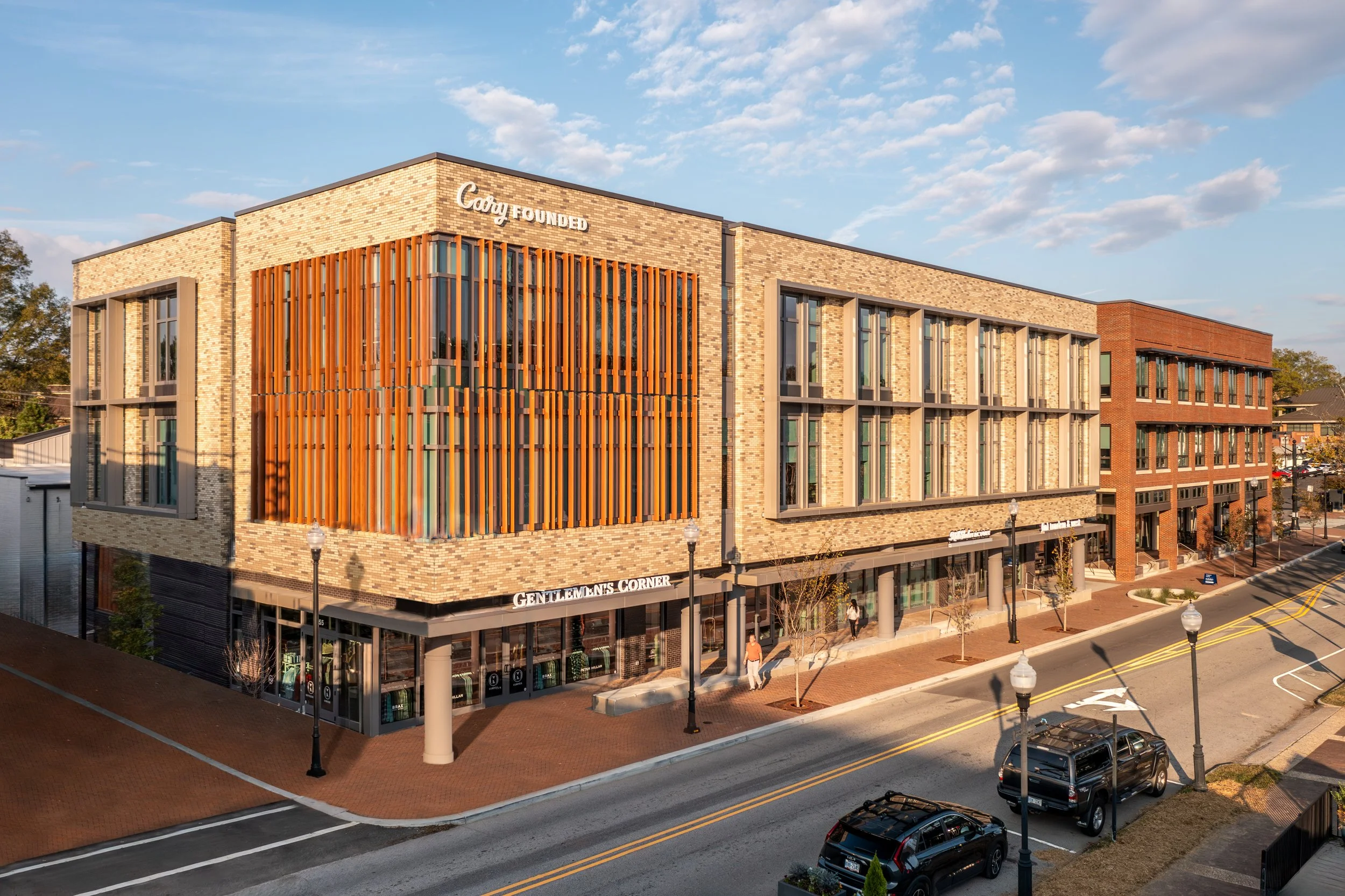 Beam was responsible for completing the office spaces, with each of the two 20,000 RSF offices tailored for WitherRavenel and Cary Founded. In addition, Beam managed the fit-ups for several ground-floor retail spaces, including Hodge and Kittrell, inTandem & West Salon, and Zest Sushi.
