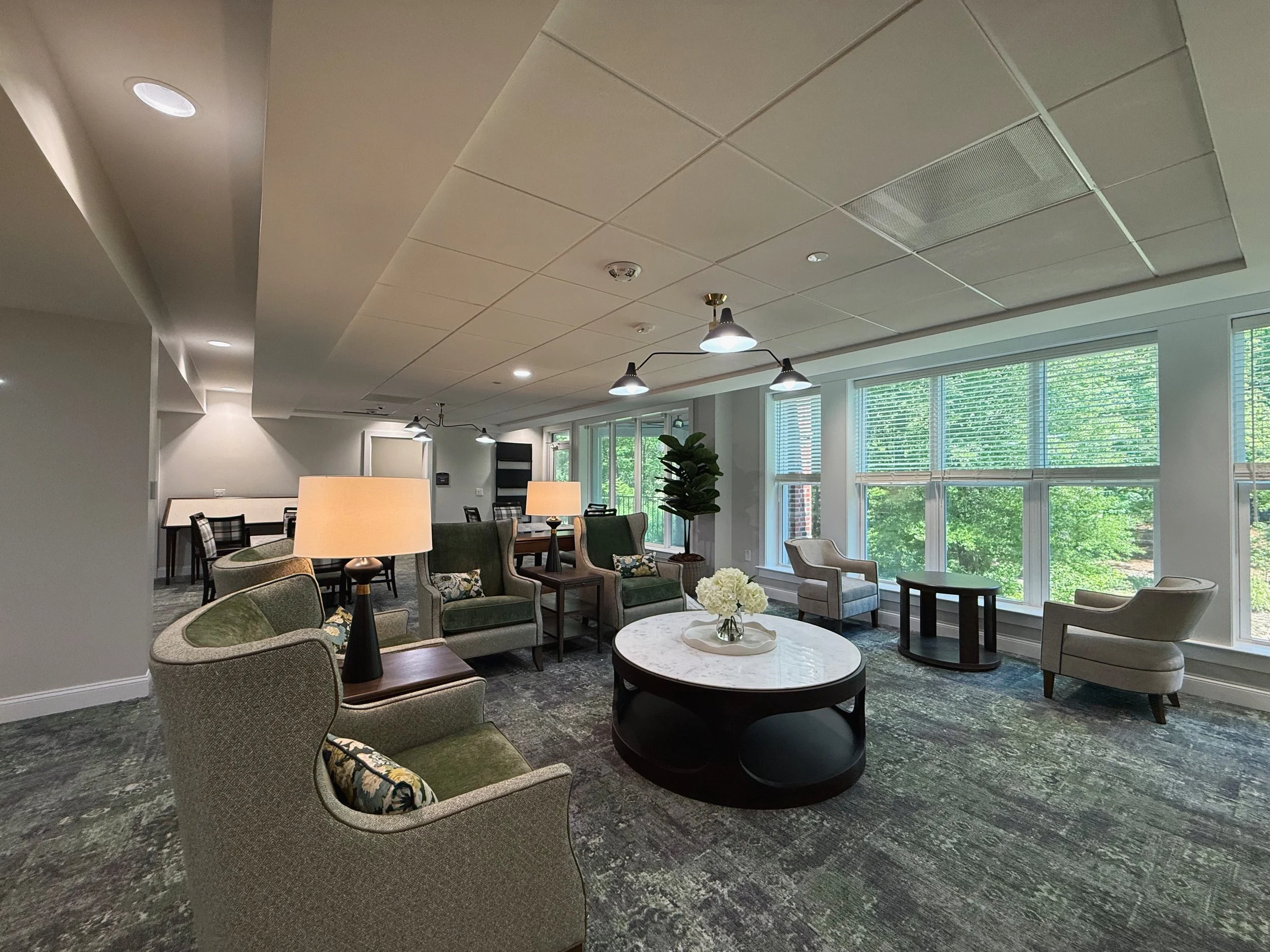 The scope included the creation of 24 one-bedroom units, as well as a new laundry room, a shared community space with a kitchen and dining area, and a nurse work station. These additions were designed to enhance residential comfort, encourage social interaction, and support on-site care services.